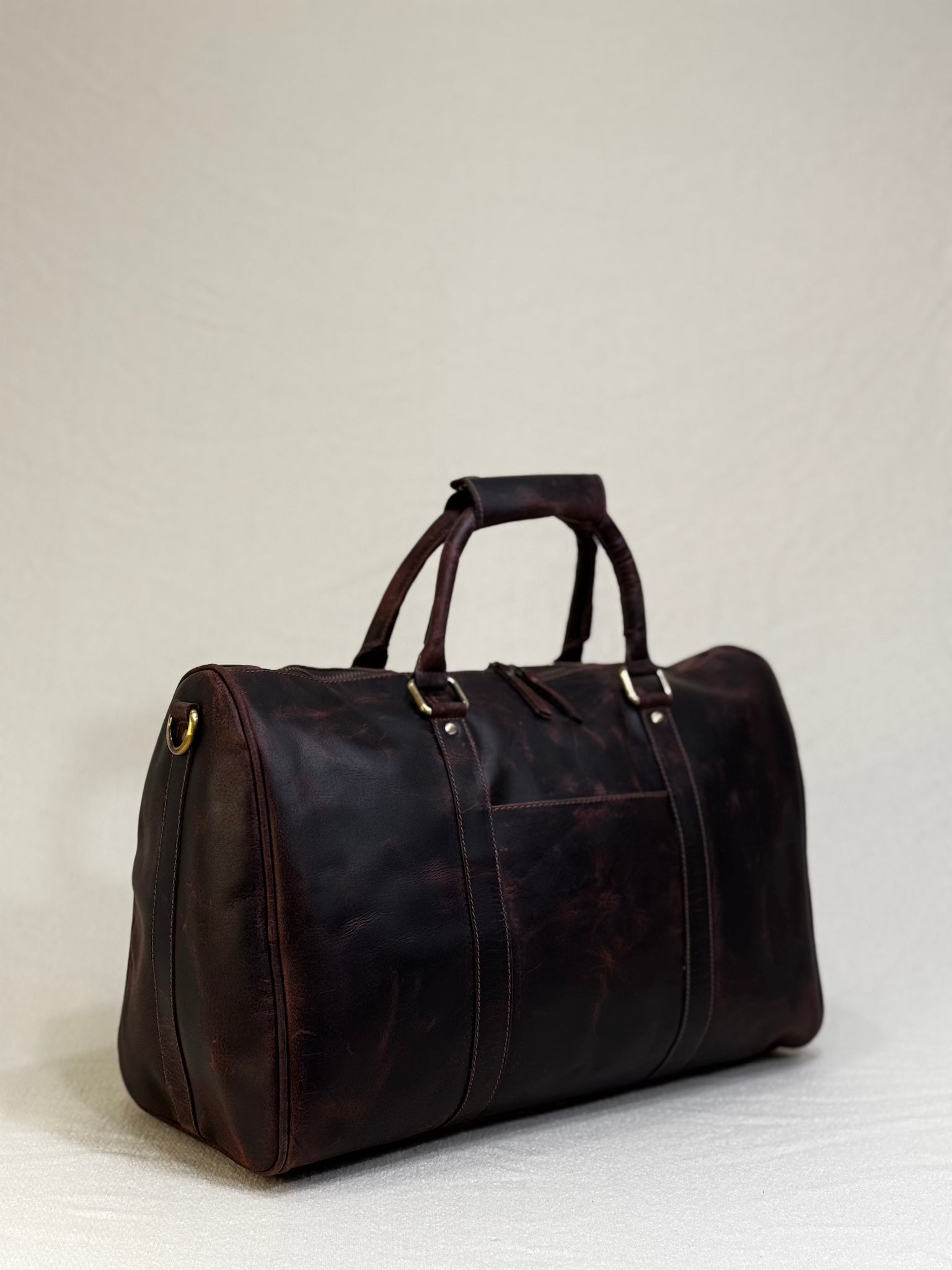 Crafted from 100% full-grain leather, the Napoli Duffle is a clean, cylindrical silhouette designed for motion. From morning workouts to spontaneous weekends. At 18x11.5x6 inches, it's the perfect carry for your core essentials, without the bulk.