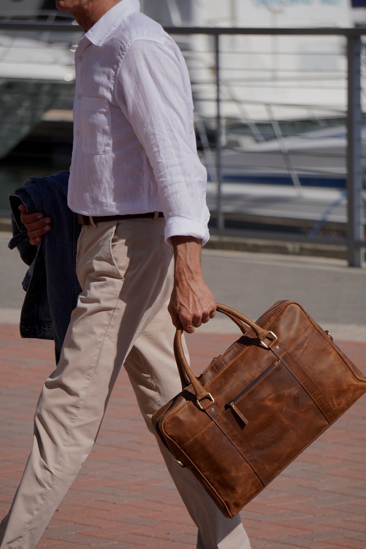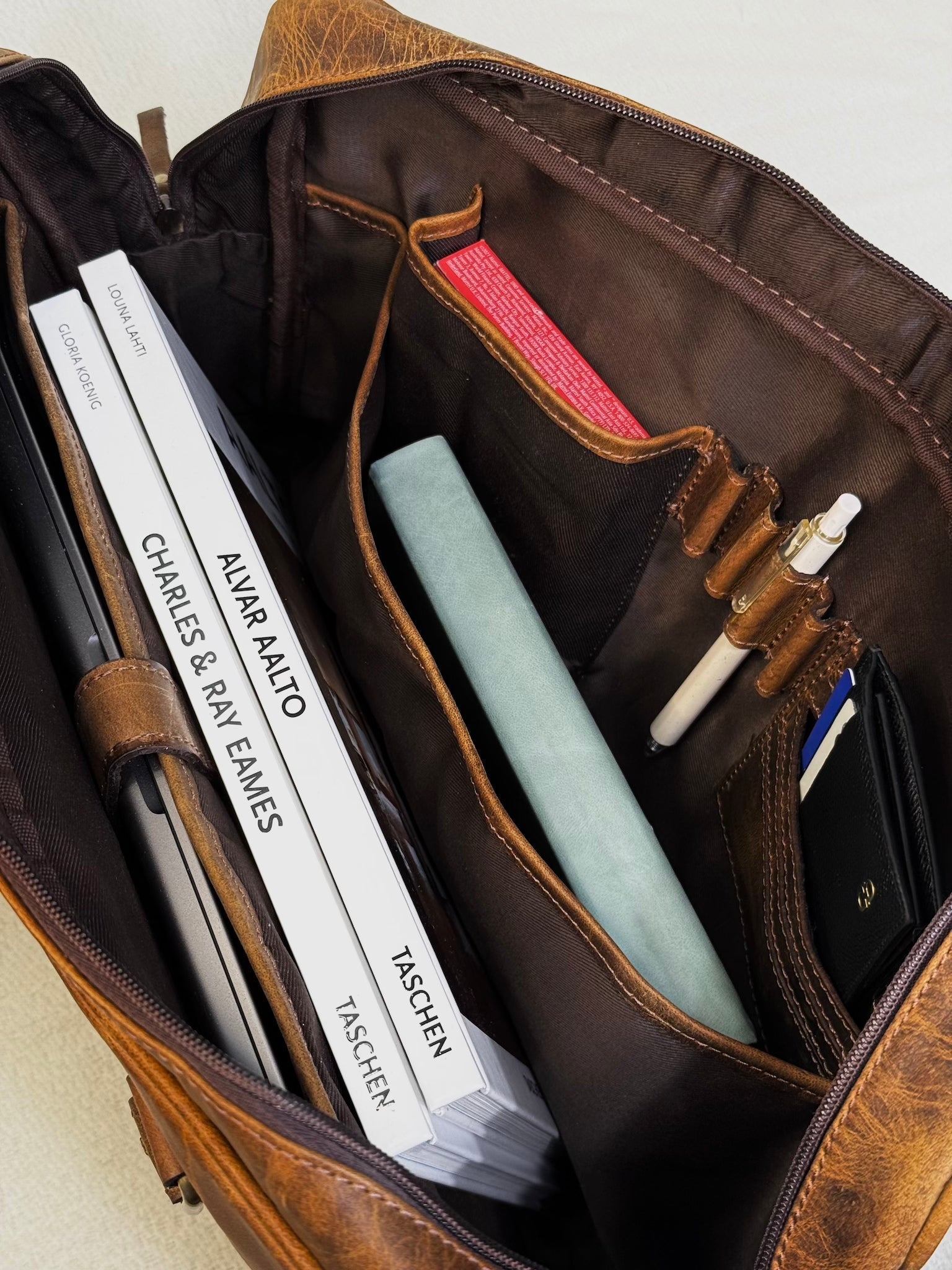 Crafted from 100% full-grain leather, the Firenze blends everyday ease with elevated structure. At 17x11x3 inches, it’s slim, refined, and built for the rhythms of professional life, trusted by professors, writers, and daily commuters.