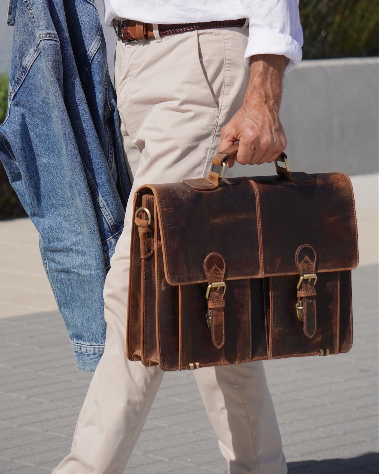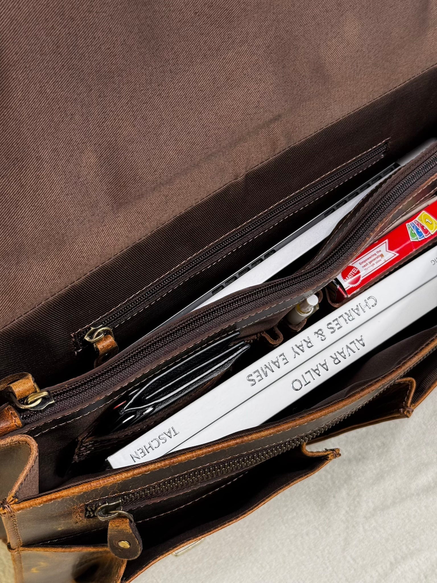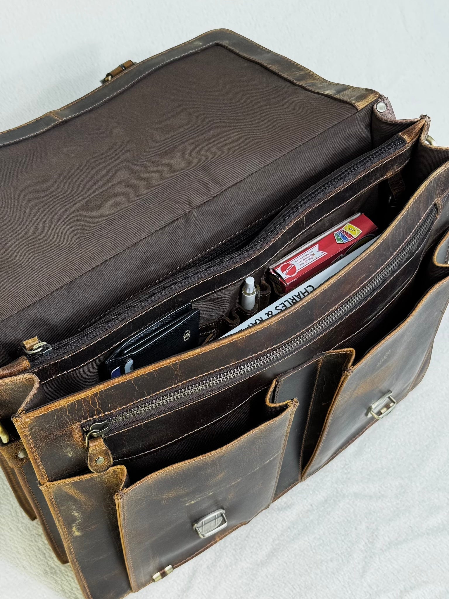 Crafted from 100% full-grain leather, the Savona combines old-world craftsmanship with everyday function. Its 16x11x5 inch frame is firm, structured, and built to endure the rhythm of business, travel, and daily wear.