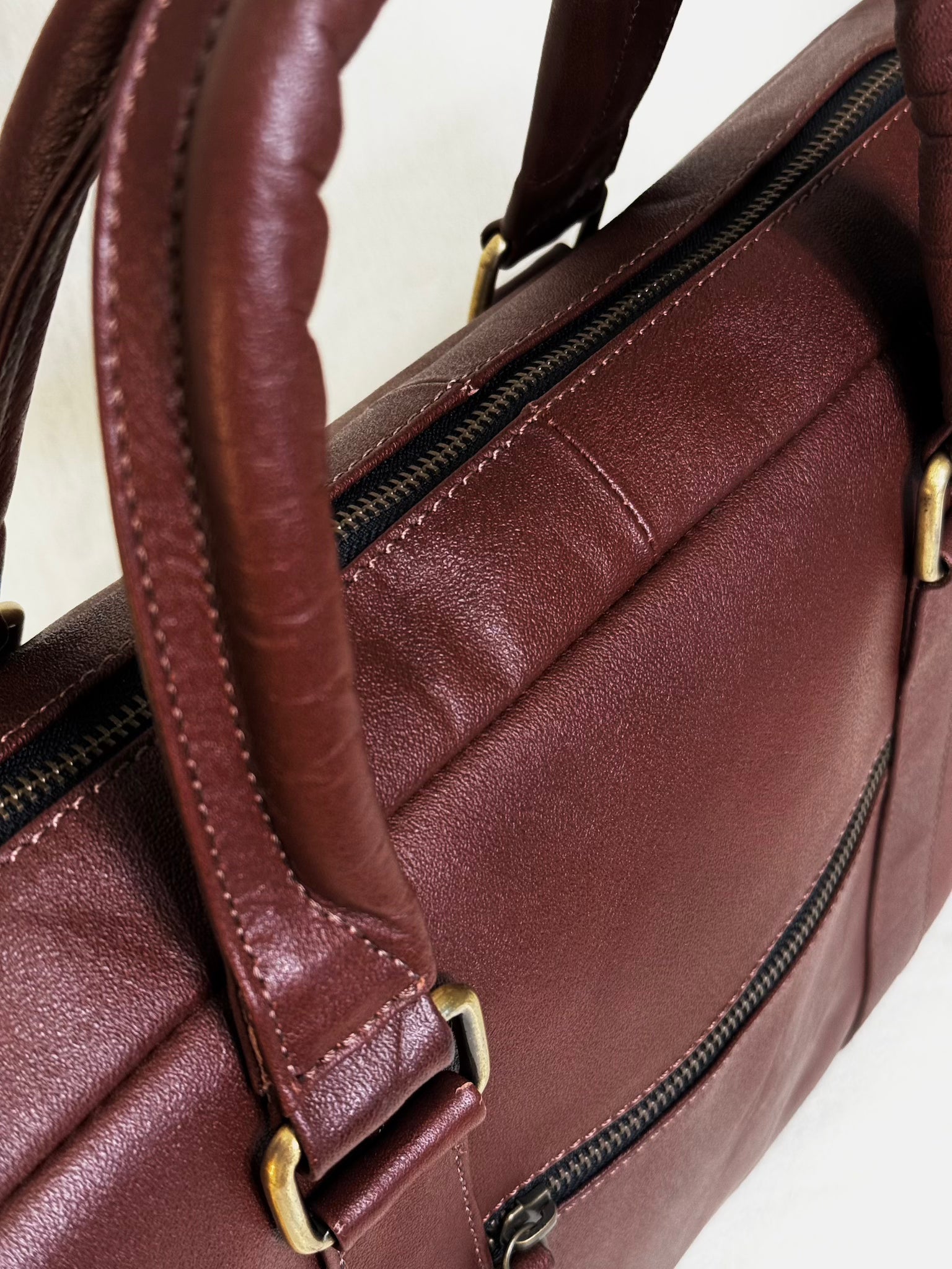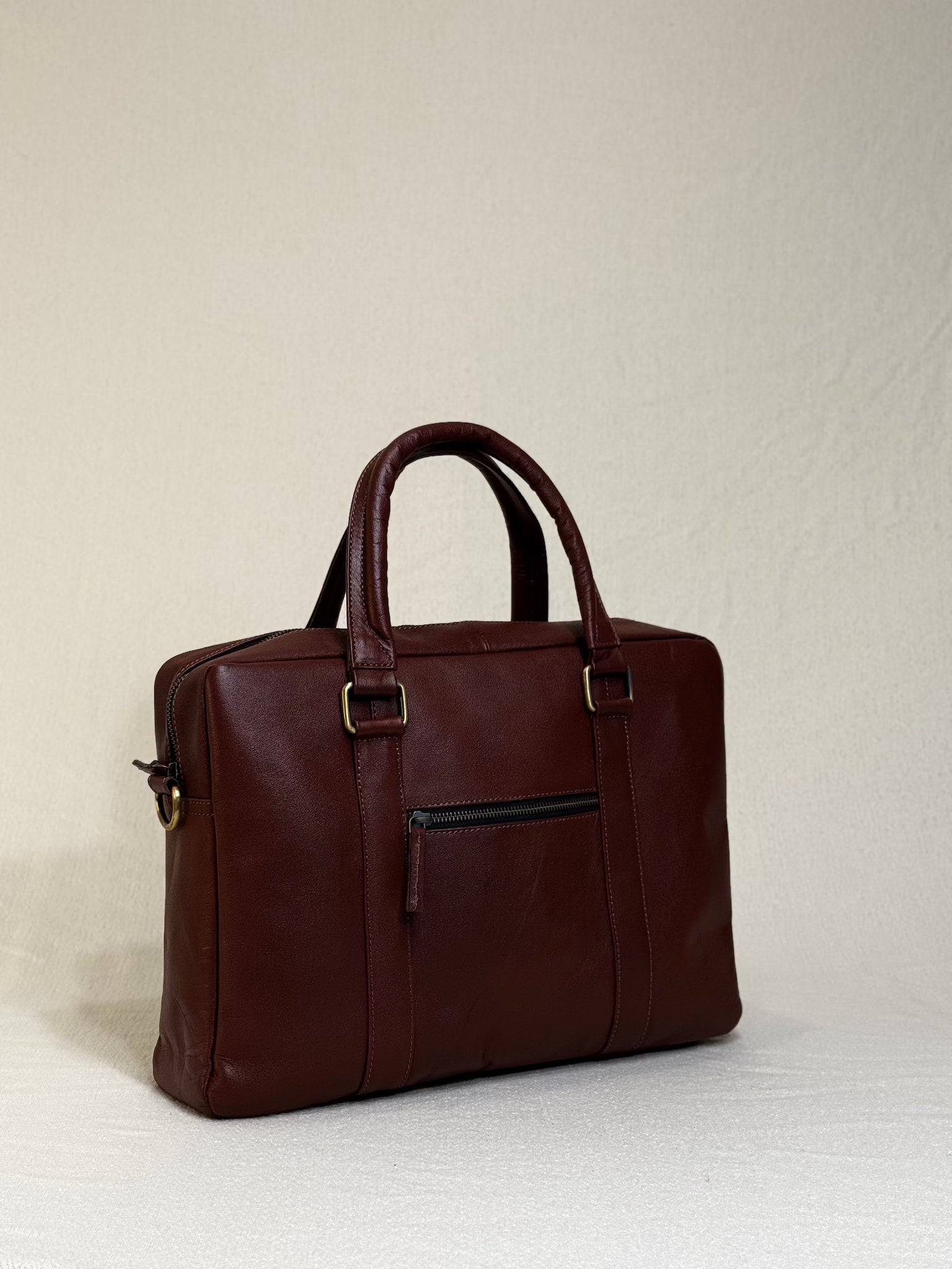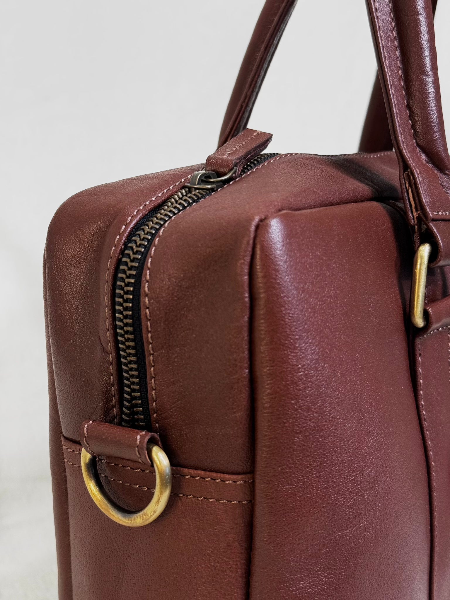 Crafted from 100% full-grain leather, the Torino offers a refined silhouette with just the right amount of structure. Its 16x11.5x3 inch frame is compact yet spacious. Built to carry what matters and nothing more.